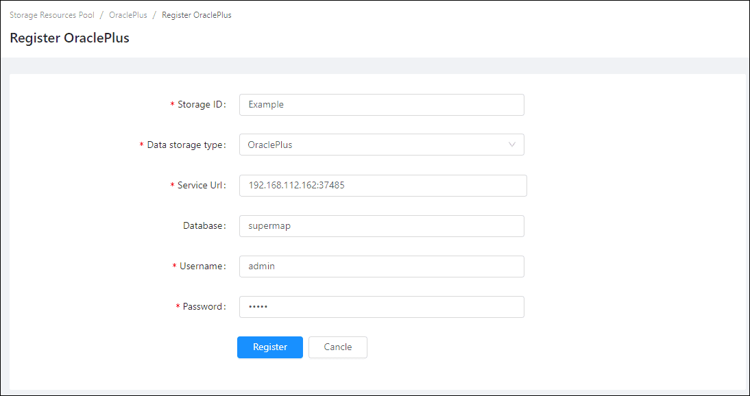 GIS Cloud Suite supports to register OraclePlus, please follow the steps below to register: